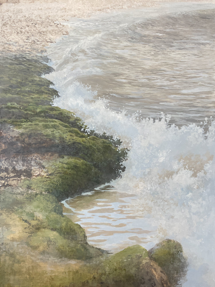 "The painting captures the precise moment the Indian Ocean strikes this boundary. It is a study of the coast not as a fixed border, but as a breathing, seasonal skin."